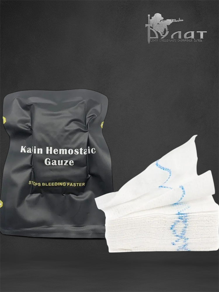 Гемостатический кровоостанавливающий бинт Z-сложенный Kaolin Hemostatic Gauze предназначен для остановки кровотечений, состав кровостанавливающей пропитки бинта входит каолин и нетканное нановолокно (не порошок или гранулы гемостатик). Размер бинта в разложенном виде 7.5 см х 1 м.