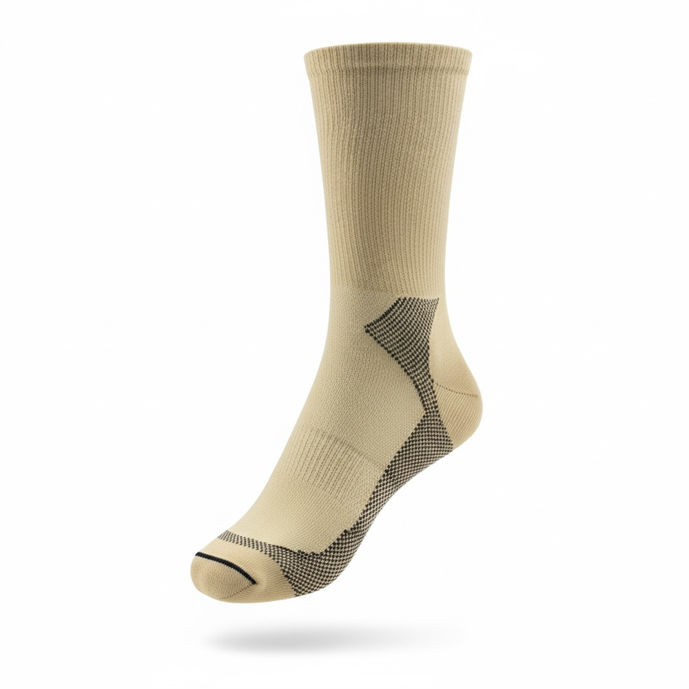 Носки предназначены для штабной и офисной работы. Основной материал пряжи, 70%, это синтетическое волокно Coolmax. Оно отвечает за отведение влаги от стопы. Для сохранения тепла и комфорта очень важно чтобы ноги были сухими. Ещё 25% пряжи, это нейлон - стойкий к истиранию материал. Эластан в составе пряжи отвечает за способность носка растягиваться и плотно облегать ногу даже после многих применений.