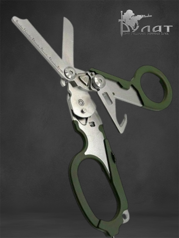 Мультитул Raptor обладает широким функционалом при малых габаритам и сочетает в себе сразу 6 инструментов. Основным инструментом являются медицинские ножницы из нержавеющей стали 420HC. Так же ножницы оснащены дополнительными функциями, что позволит выполнять широкий спектр задач при оказании помощи людям – стропорез, щипцы для резки колец, линейка, гаечный ключ для кислородного баллона, стеклорез с лезвием из твердого сплава.