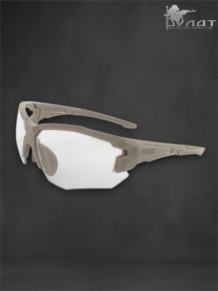 Очки с 4 сменными линзами светопропускаемостью (прозрачные 96%, желтые 89%, оранжевые 51%, серые 23%).