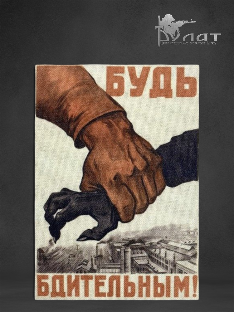 Патч (нашивка, шеврон) текстильный с изображением известного советского плаката с призывом "Будь бдительным!" Размер 80х100 мм