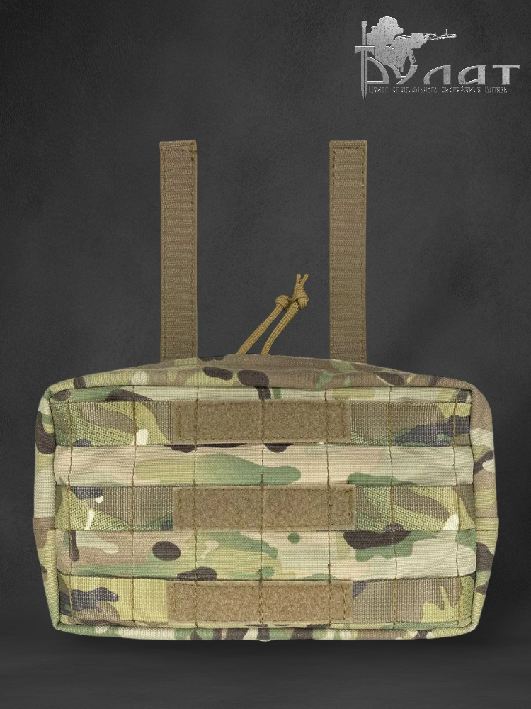На передней части подсумка присутствуют ячейки Molle и велкро для закрепления патчей, опознавательных знаков. Внизу подсумка люверс для стока жидкости.