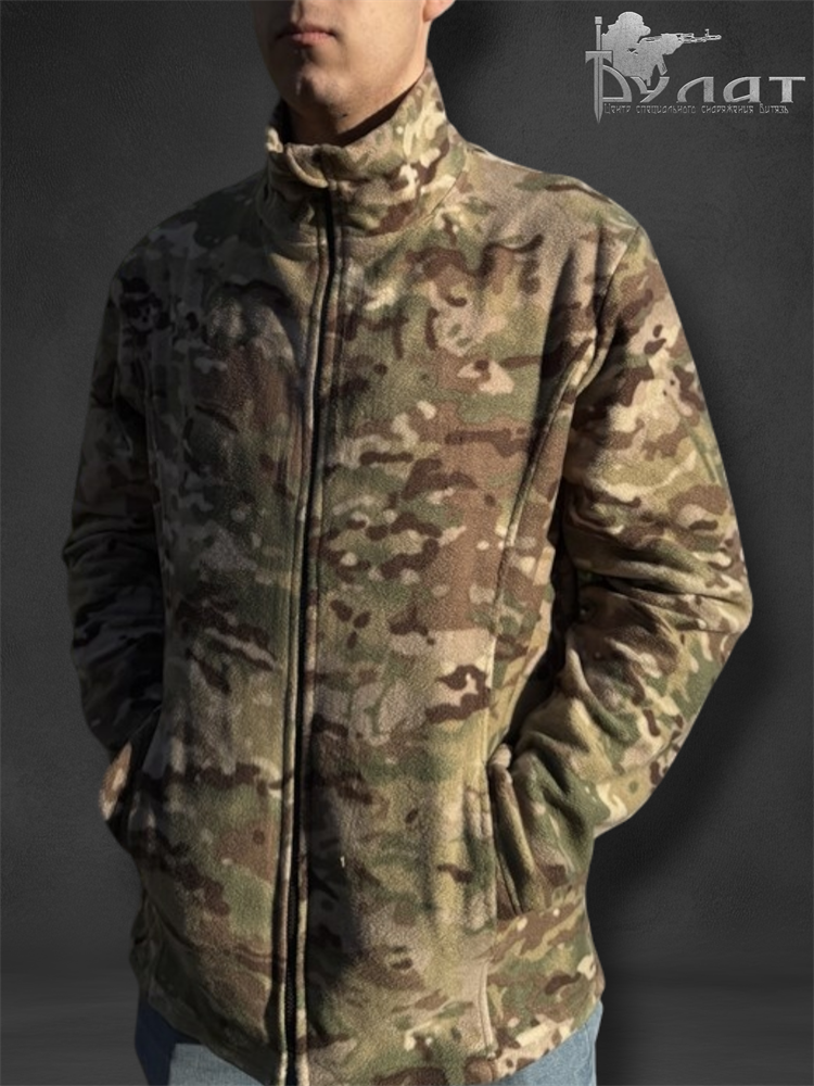 Данная толстовка российского производства пошита из искусственного флиса и застегивается на молнию. Имеются два кармана под руки. Крой - прямой. Воротник закрывает горло.
