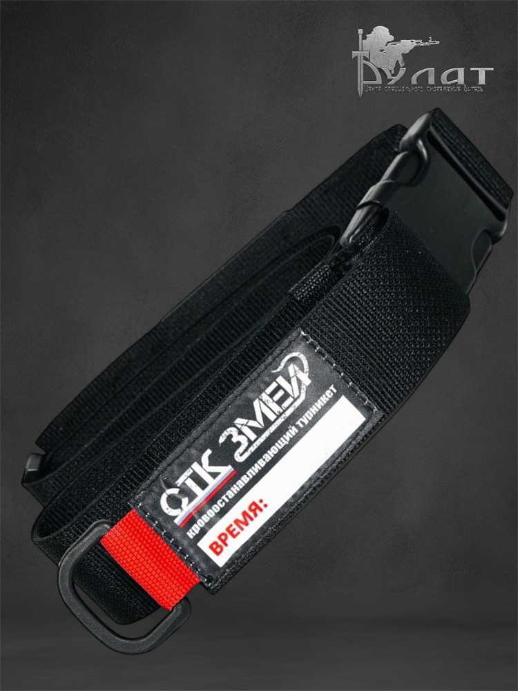 Представляем вашему вниманию, турникет российского производства СТК«Змей». Создан для работы в красной зоне. Описание: 1. Фастекс - обеспечивает быстрое наложение турникета, выдерживает нагрузку на разрыв 90кг. 2. Стропа - выполнена из высокопрочного материала, имеет повышенную износостойкость как в полевых, так и в условиях тренировки. 3. Компрессия - осуществляются за счет поворота зубчатого воротка по часовой стрелке, не давая обратного хода. 4. D-образное кольцо - расположенное на верхней части воротка, позволяет ослабить турникет на нужное количество оборотов для контроля кровотечения.