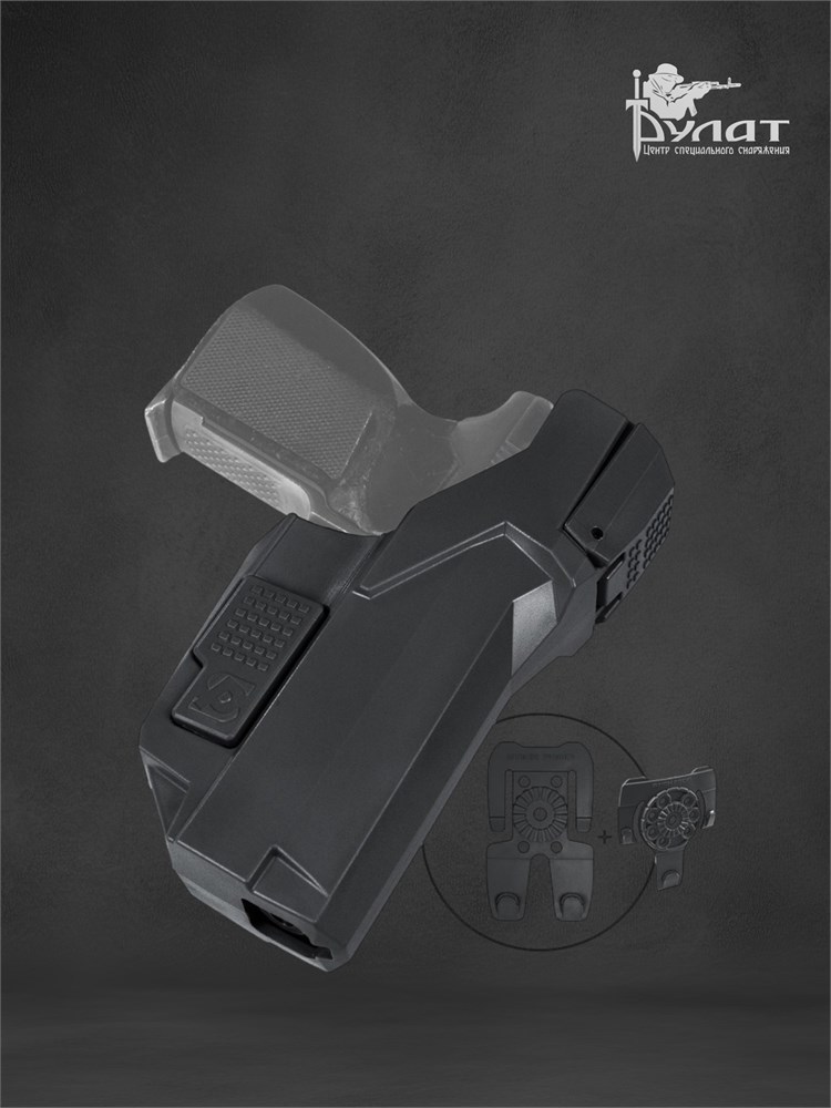 В комплекте с кобурой идут два крепления на МОЛЛЕ типа "Краб" (большой и малый), с возможность поворота угла наклона кобуры.