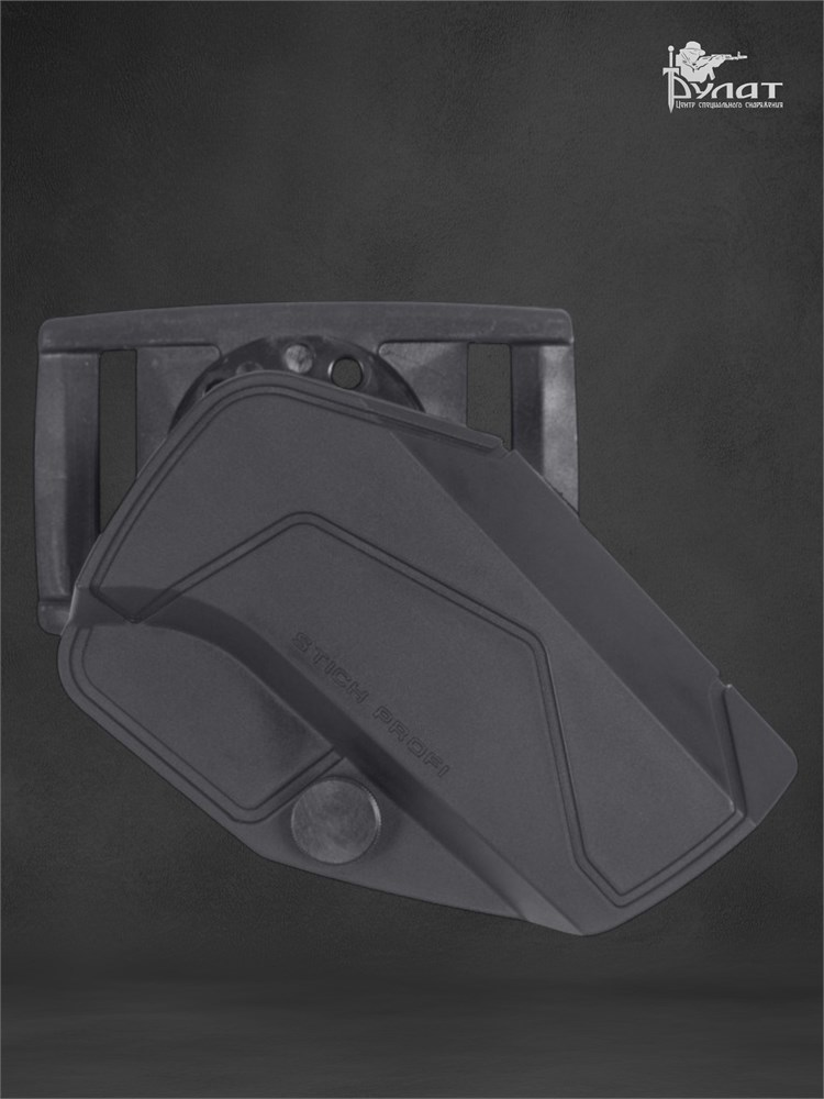 Кобура выполнена из высокопрочного, устойчивого к перепадам температур пластика. Кобура имеет удобный механизм регулировки плотности фиксации пистолета не требующий инструментов. За счет отсутствия дополнительного хлястика фиксации извлечение оружия происходит намного быстрее, чем из кожаной кобуры.