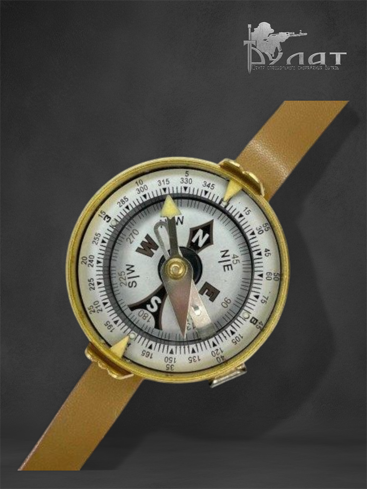 Магнитная стрелка установлена в центре корпуса на игле, неподвижная шкала (лимб) имеет двойную оцифровку – в градусах и делениях угломера, специальный стопор (арретир) фиксирует магнитную стрелку.