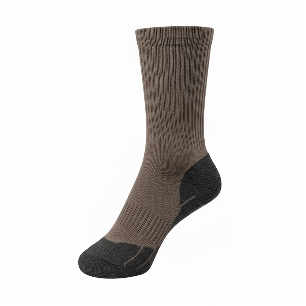Название — Пахота, отражает характер эксплуатации. Носки предназначены для тяжёлого труда. Основной материал пряжи, 55%, это синтетическое волокно Coolmax. Оно отвечает за отведение влаги от стопы. Для сохранения тепла и комфорта очень важно чтобы ноги были сухими. Ещё 43% пряжи, это нейлон - стойкий к истиранию материал. Особо усилена нейлоном подошва, на истирание до дыр уйдёт много времени. Приятно, когда носки служат долго и не рвутся. Эластан в составе пряжи отвечает за способность носка растягиваться и плотно облегать ногу даже после многих применений.
