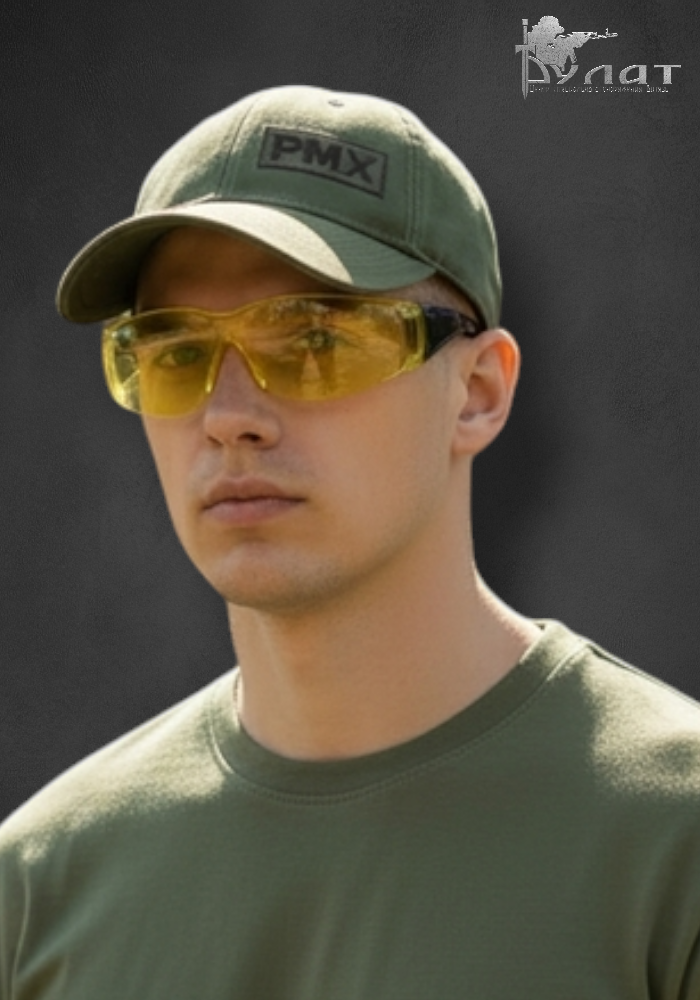 Баллистические стрелковые очки с жёлтыми ударопрочными, поликарбонатовыми линзами.