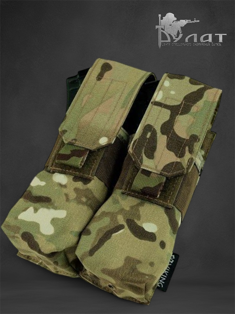Подсумок с клапаном для размещения магазинов серии АК и их аналогов. Вмещает 4 магазина (по 2 в каждое отделение). Отделения закрываются на клапан с липучкой. Внутри отделения есть несъемная перегородка, с внешней стороны отделение опоясывает широкая резинка для более плотной фиксации магазинов. Крепится на MOLLE