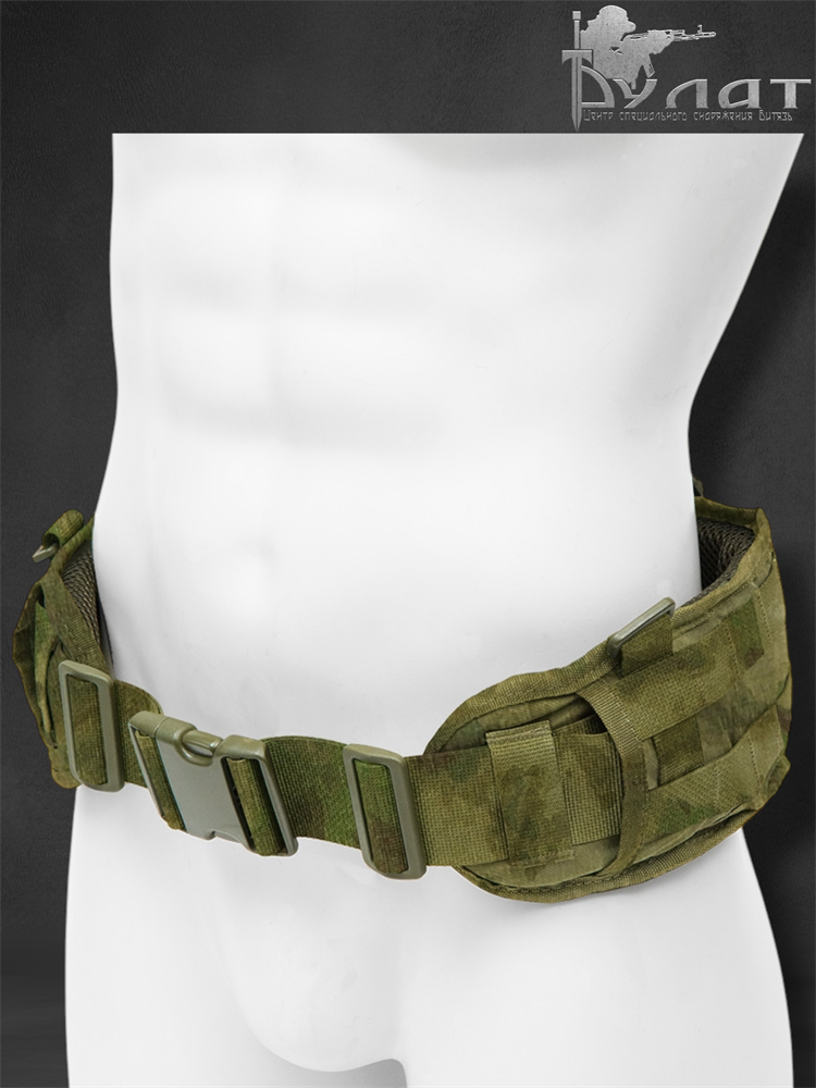 По всей его площади нашиты стропы «молле» для крепления различных подсумков или снаряжения с системой крепления молле. Это позволяет комфортно размещать на боевом поясе различные магазинные, гранатные, утилитарные и прочие подсумки в соответствии с текущими потребностями пользователя.