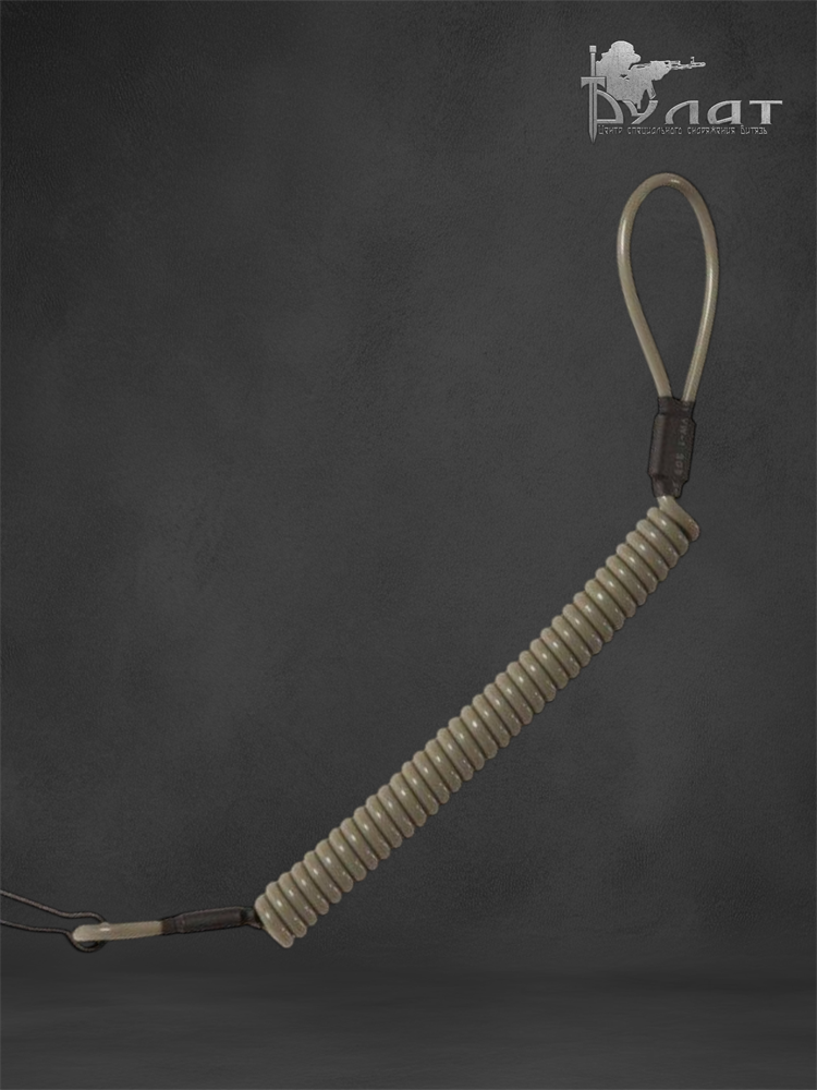 – металл (центральная жила, карабин, обжимные кольца).Конструктивные особенности:В сравнении с традиционными (кожаными, синтетическими) пистолетными тренчиками фиксированной длины, витой пистолетный шнур пружинного типа максимально компактен: в позиции «оружие в кобуре» его длина не превышает 12 см. Малые размеры шнура, во-первых, затрудняют его захват с целью завладения оружием кем-либо посторонним, во-вторых, сводят к минимуму вероятность случайных зацепов за внешние предметы при любом виде передвижения. Кроме того, круглое сечение и упругость материала не позволяют шнуру зацепиться за элементы собственного снаряжения при экстренном извлечении пистолета: гладкая пластиковая спираль легко «скатывается» с любых выступов амуниции. Стальная стержневая жила обеспечивает прочность шнура на разрыв: гарантия прочности при рывке – не менее 20 кг, при растягивании – втрое больше; а также приводит шнур в исходное «сжатое» положение при возвращении оружия в кобуру. Конструкция крепежных элементов – мягкая петля и металлический карабин – исключает возможность случайного расстегивания: в стандартном варианте петля фиксируется на поясном ремне, карабин – на антабке пистолета. Длина шнура в растянутом состоянии точно соответствует расстоянию от места его фиксации на поясном ремне до рукояти пистолета, практически без провисания, вне зависимости от антропометрических данных владельца. Материал шнура принципиально исключает снижение прочности, растяжение вследствие размокания, или деформацию, потерю эластичности в результате пересыхания.